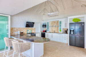 The interiors are simply magnificent. The villa is equipped with a state-of-the-art kitchen and cozy living spaces, as well as a 65-inch TV screen, home theater, and a sonos sound system throughout. And of course, every room in the house is climatized for added comfort, although you can always open up the dining room and let the soothing ocean breeze in.